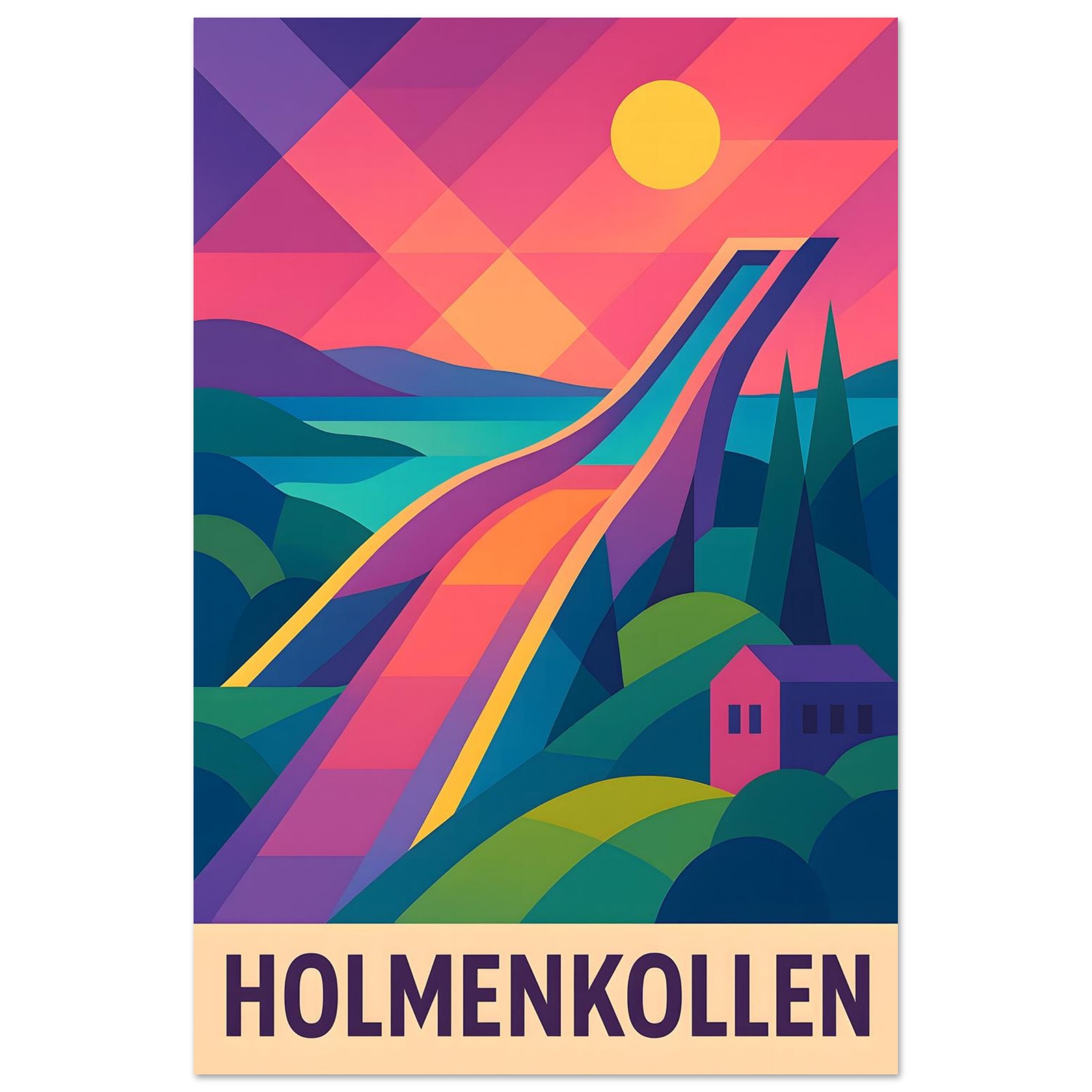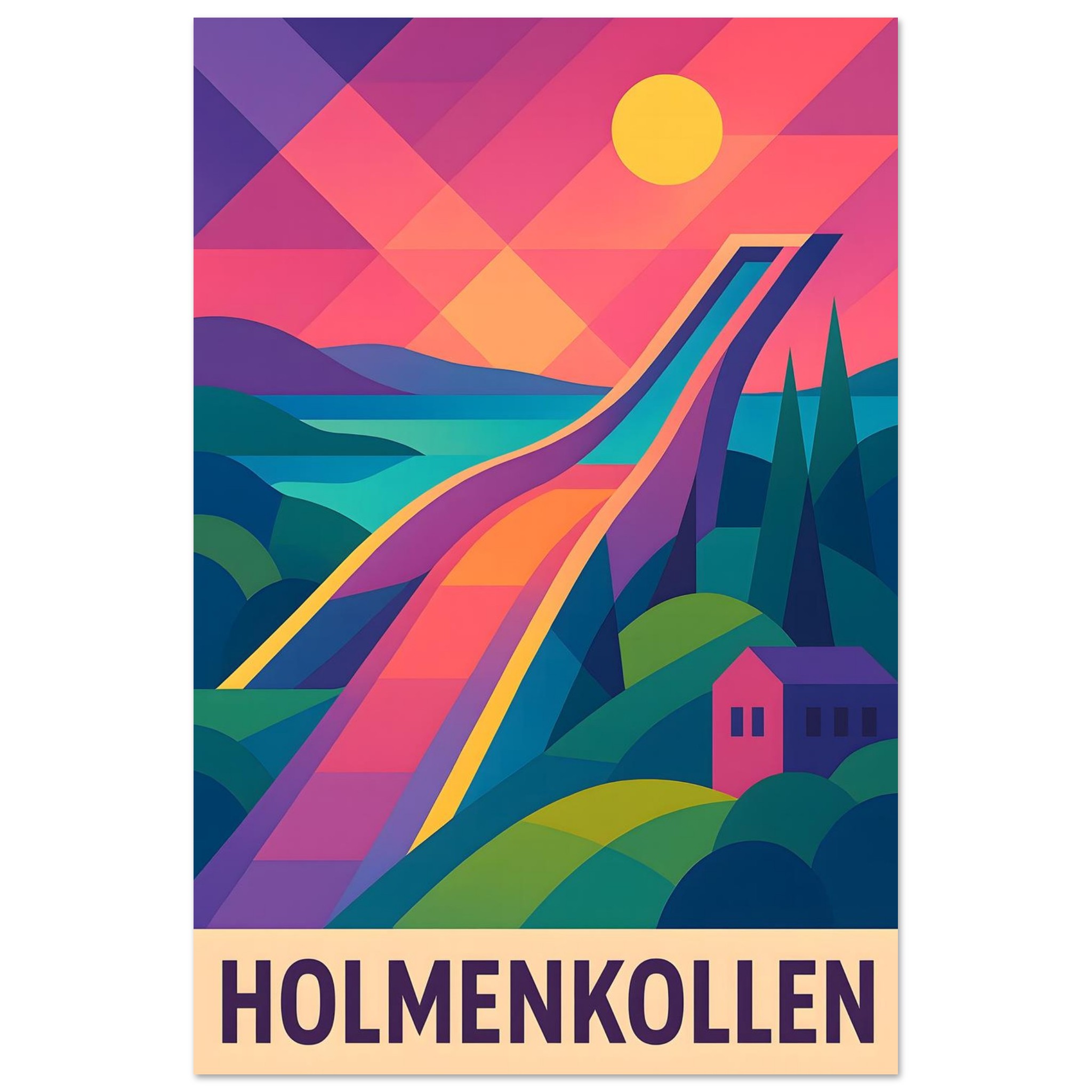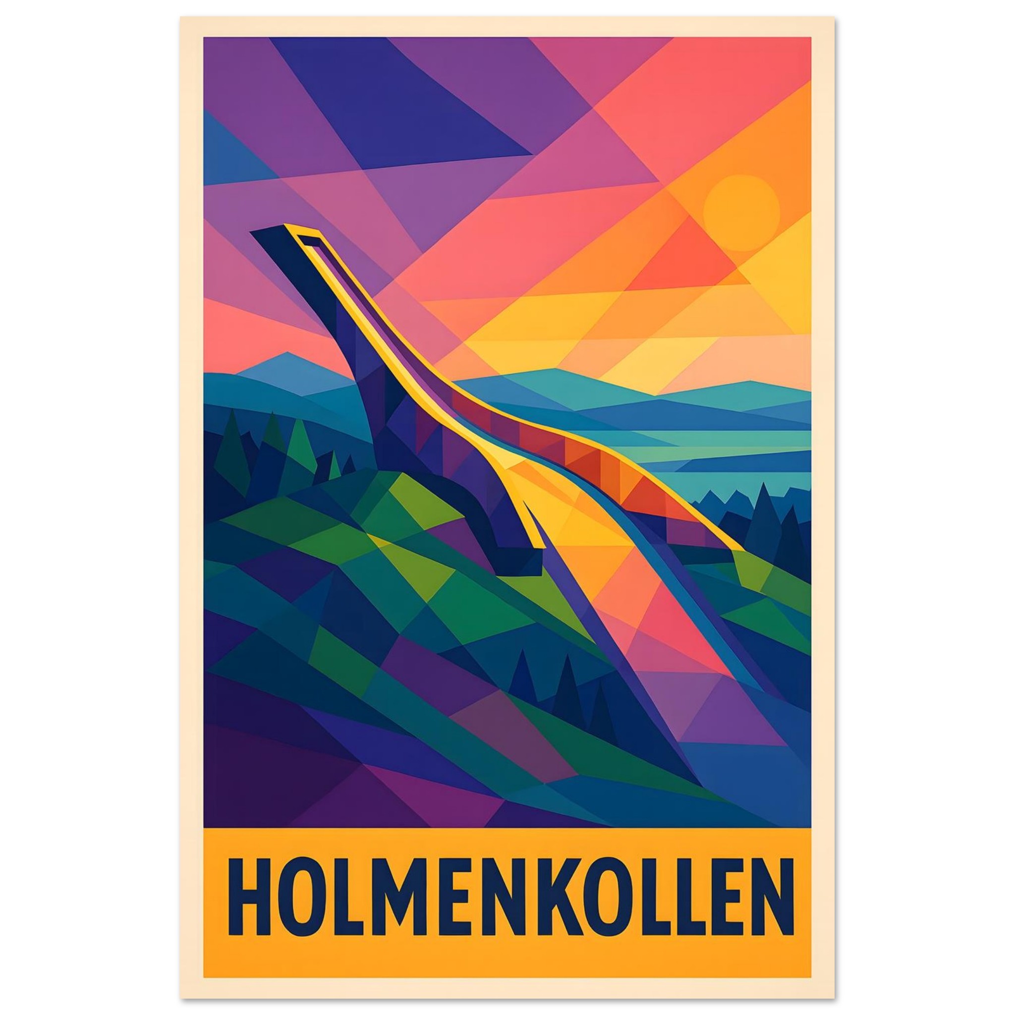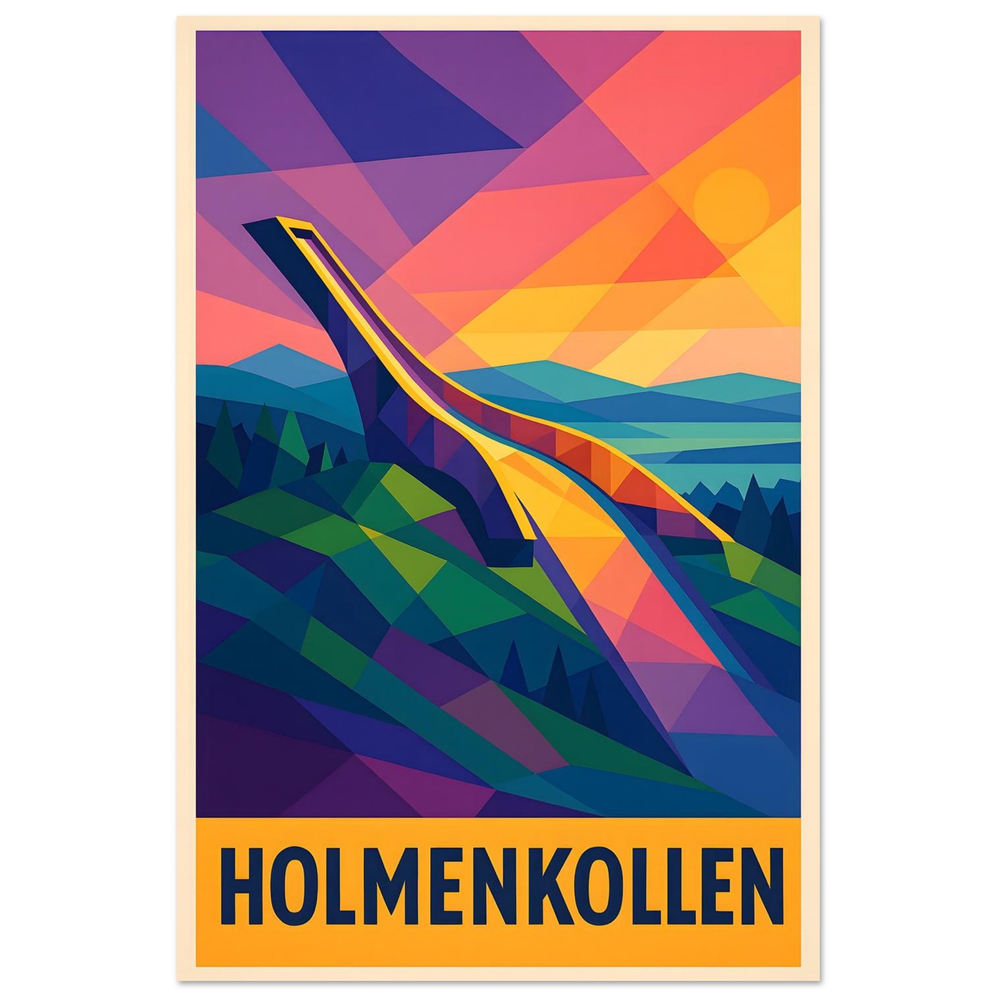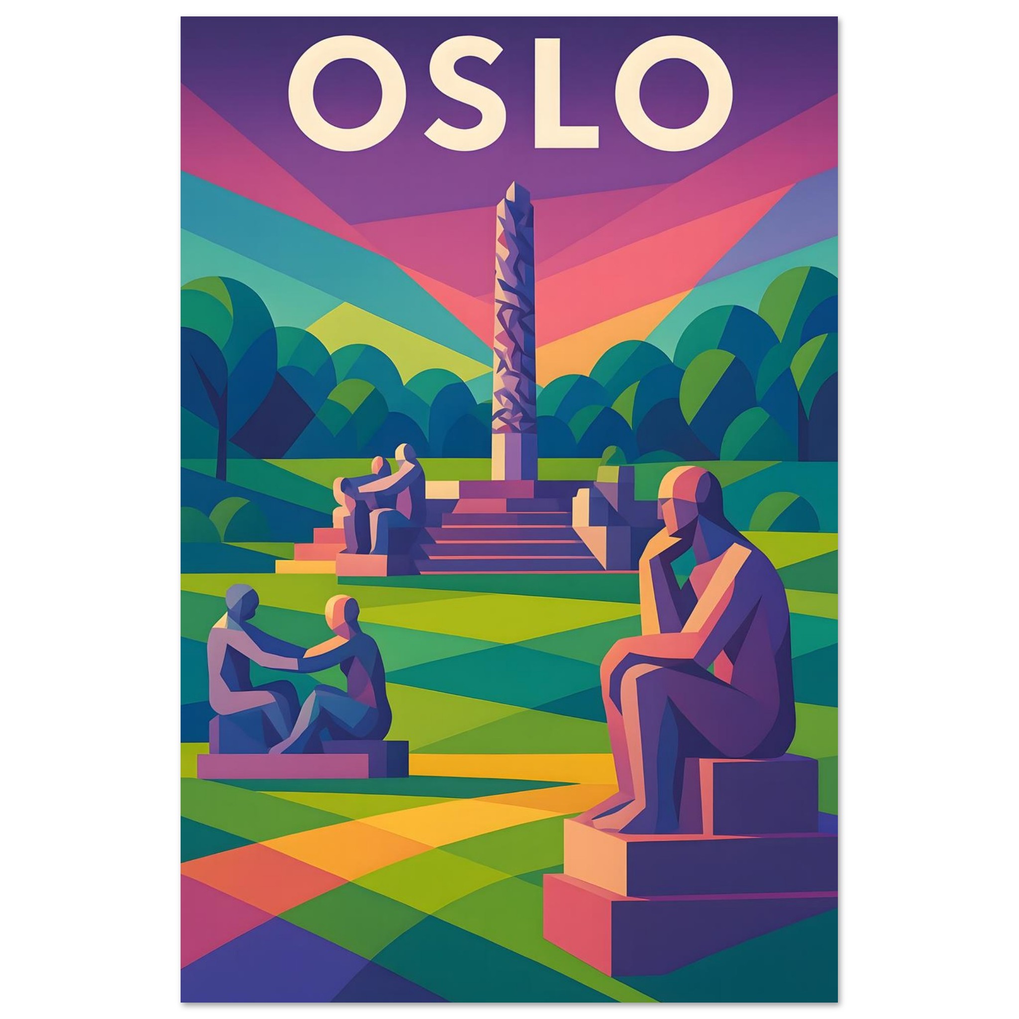 A colorful geometric vector-style illustration of Oslo. Experience art that feels silky to the touch with our high-quality, lighter-weight, classic semi-glossy paper: