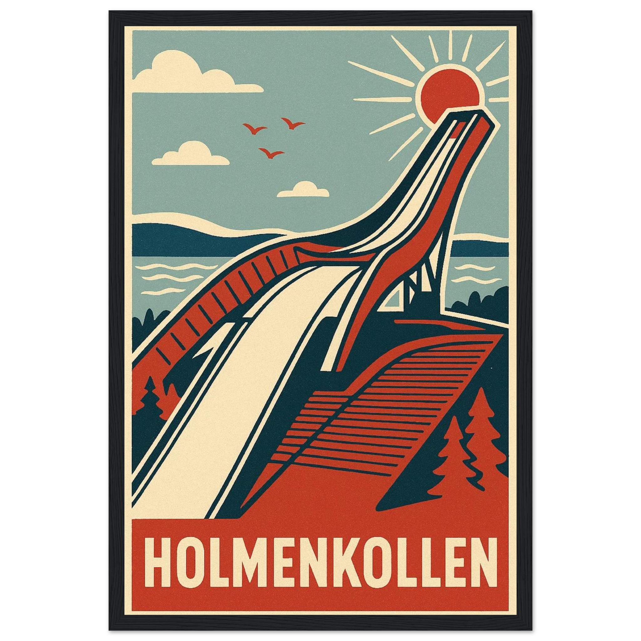 Framed Bold Retro Poster / Dark Wood