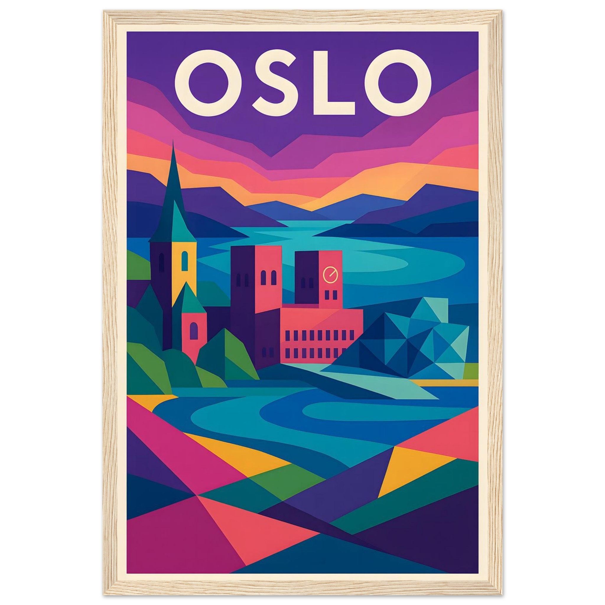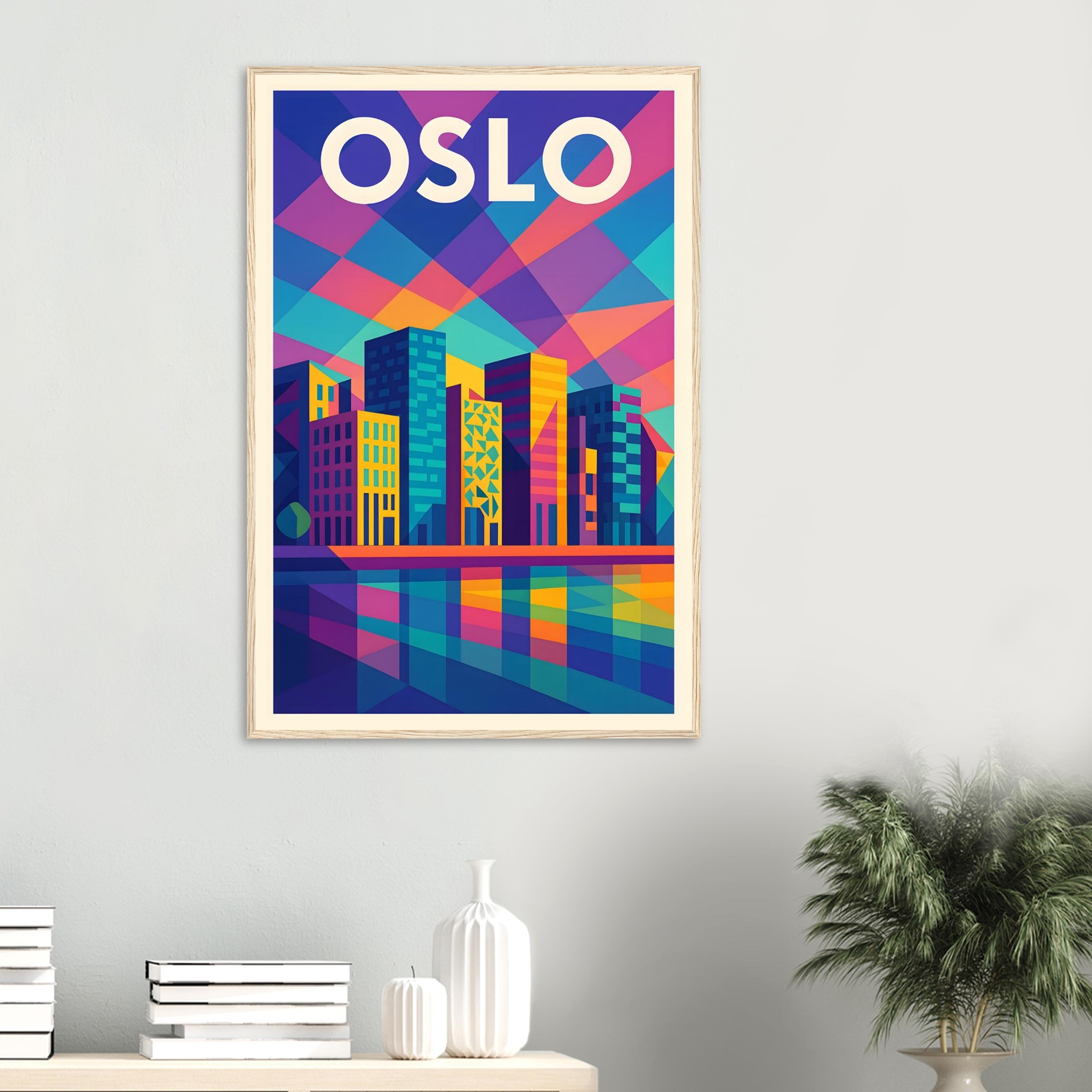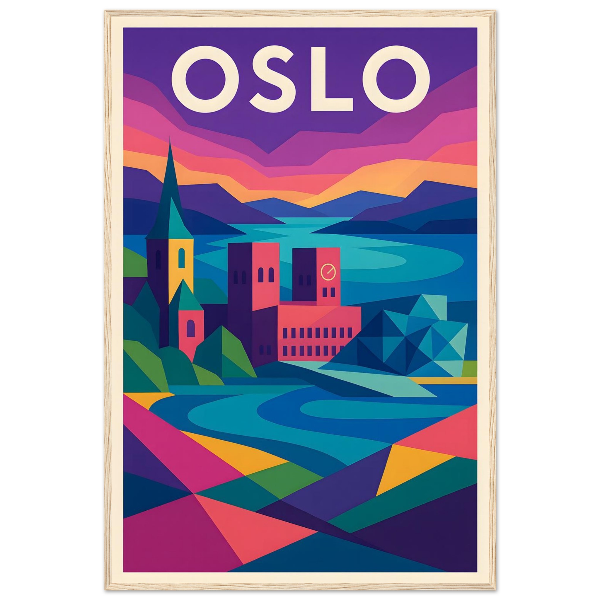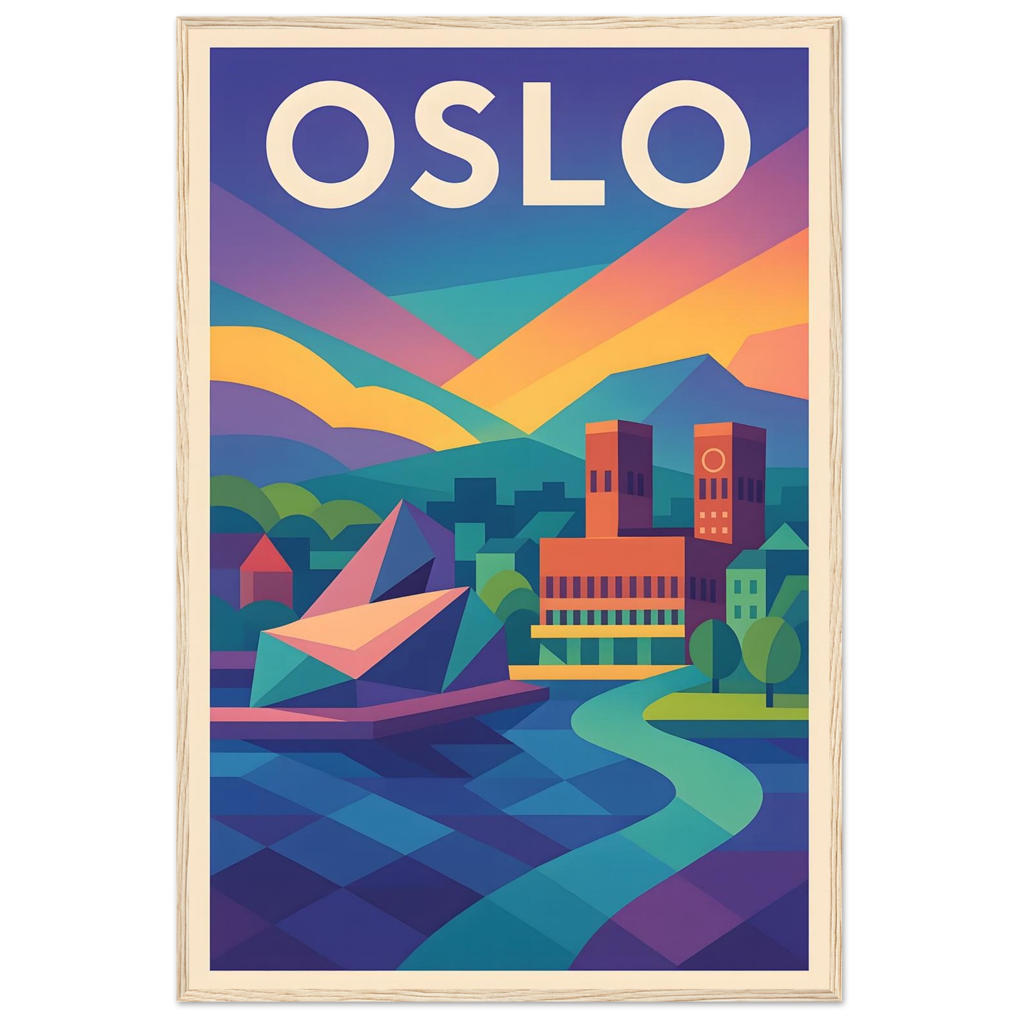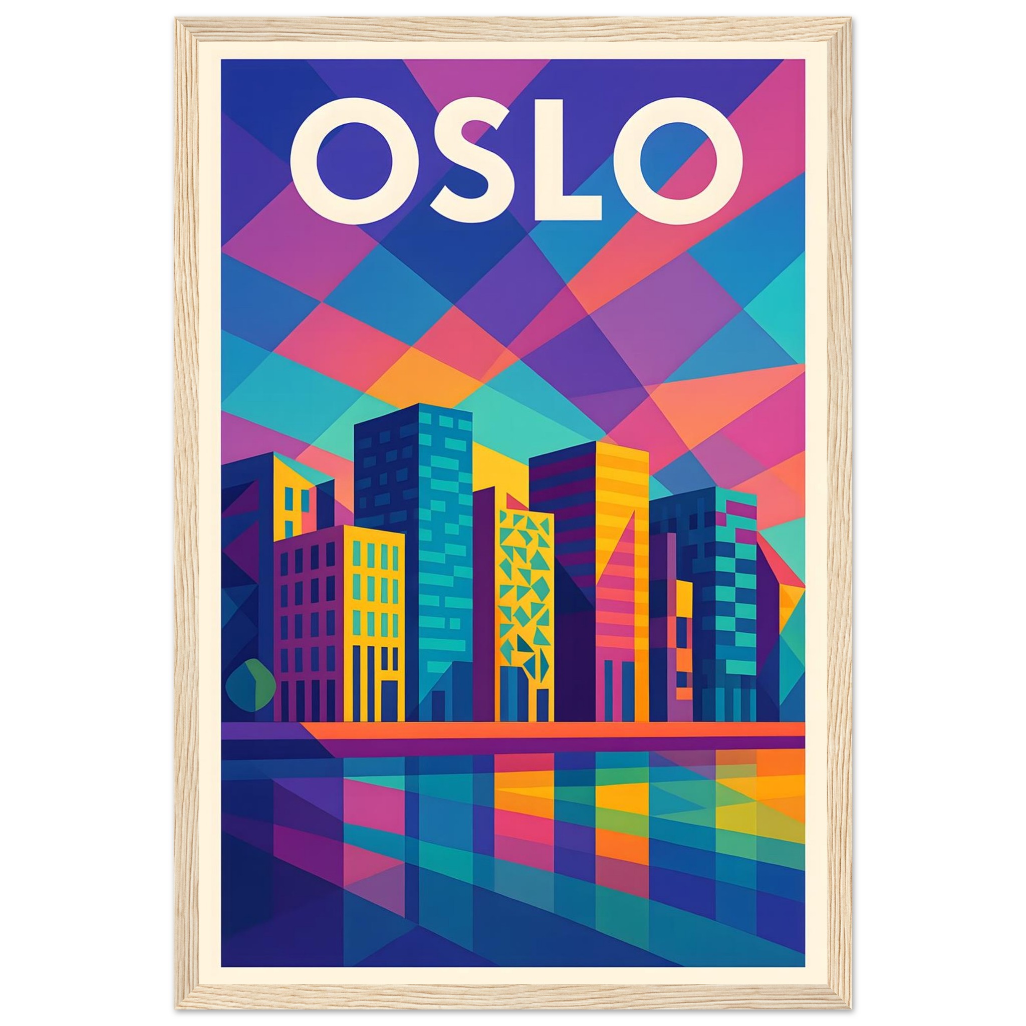 Framed Colorful Geometric Poster / Wood