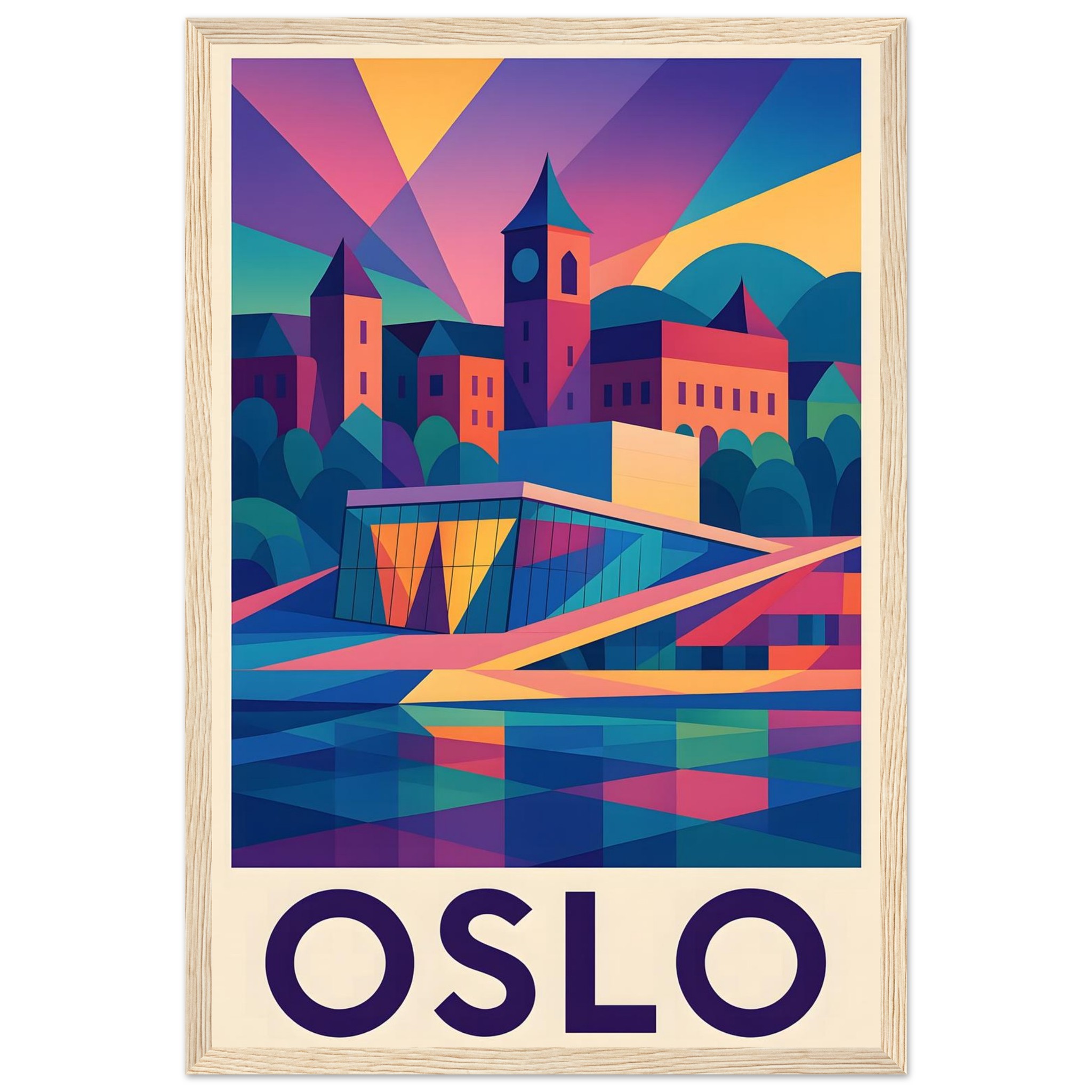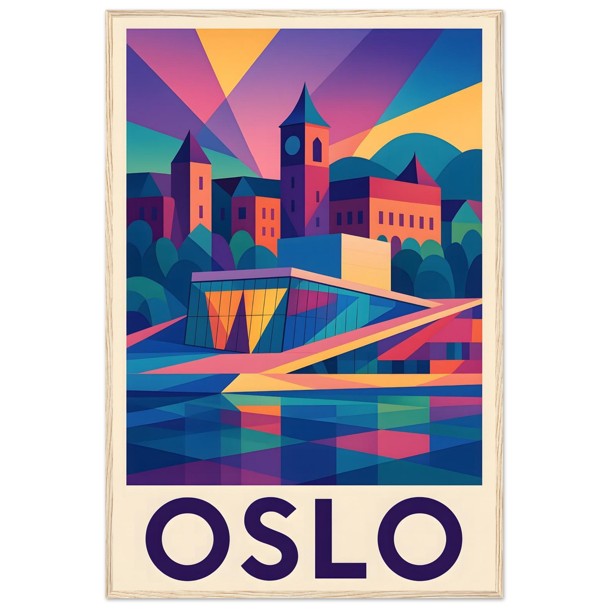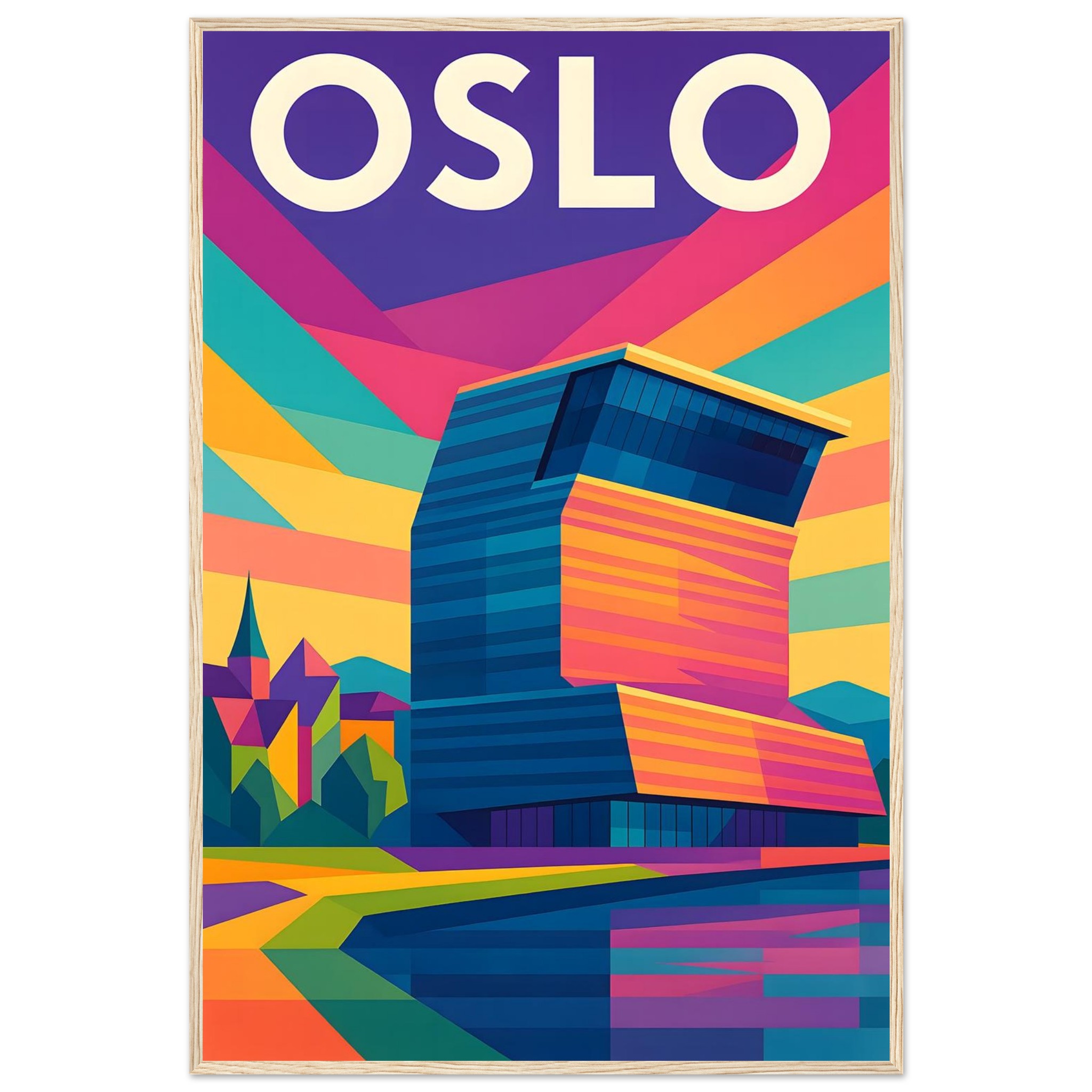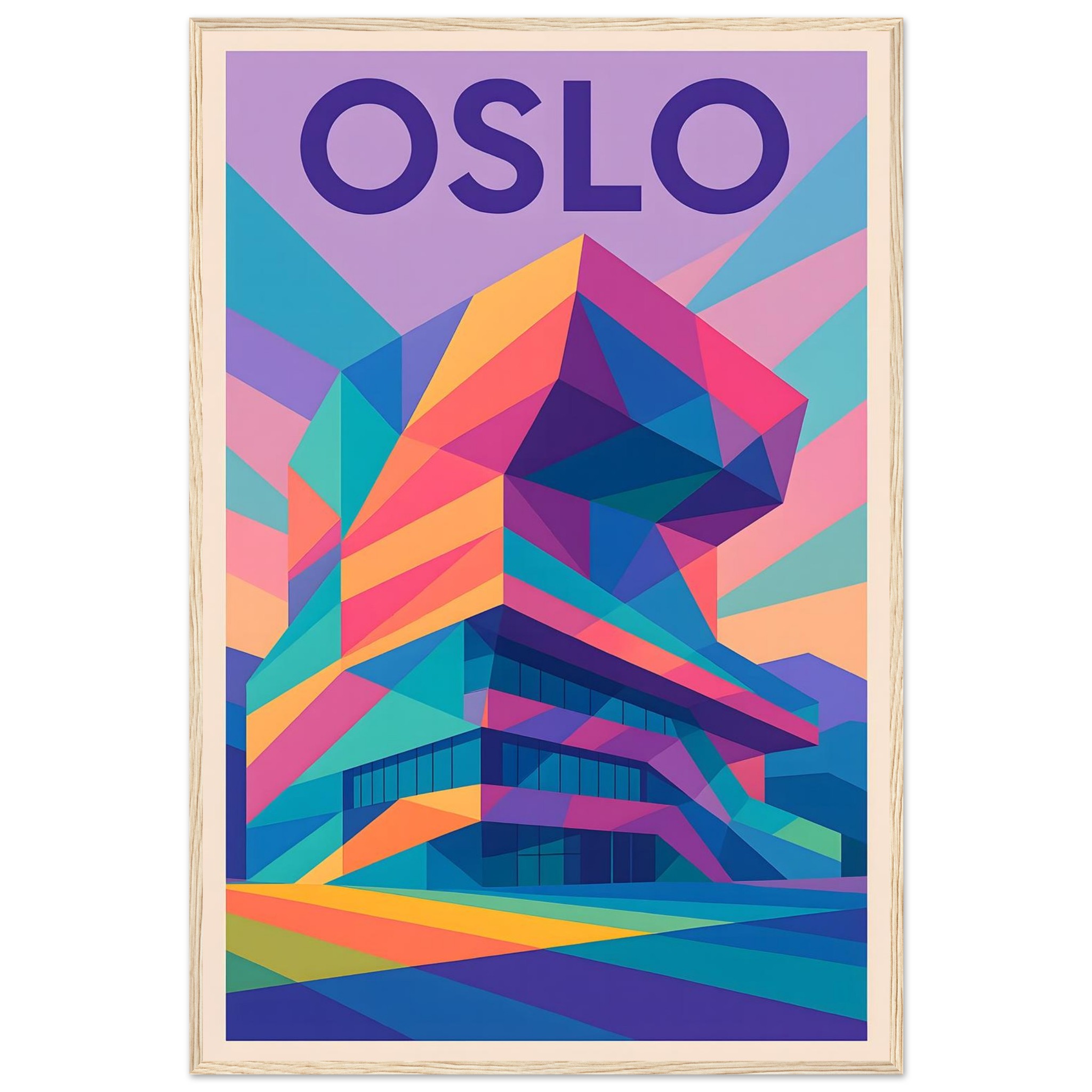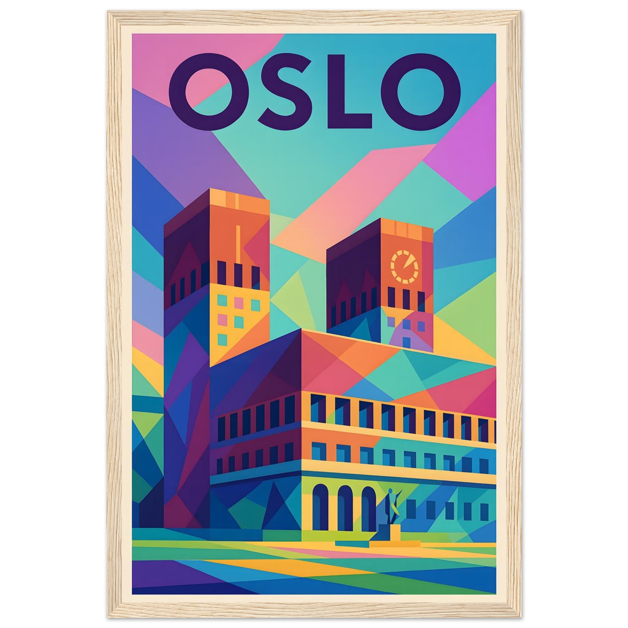 Framed Colorful Geometric Poster / Wood