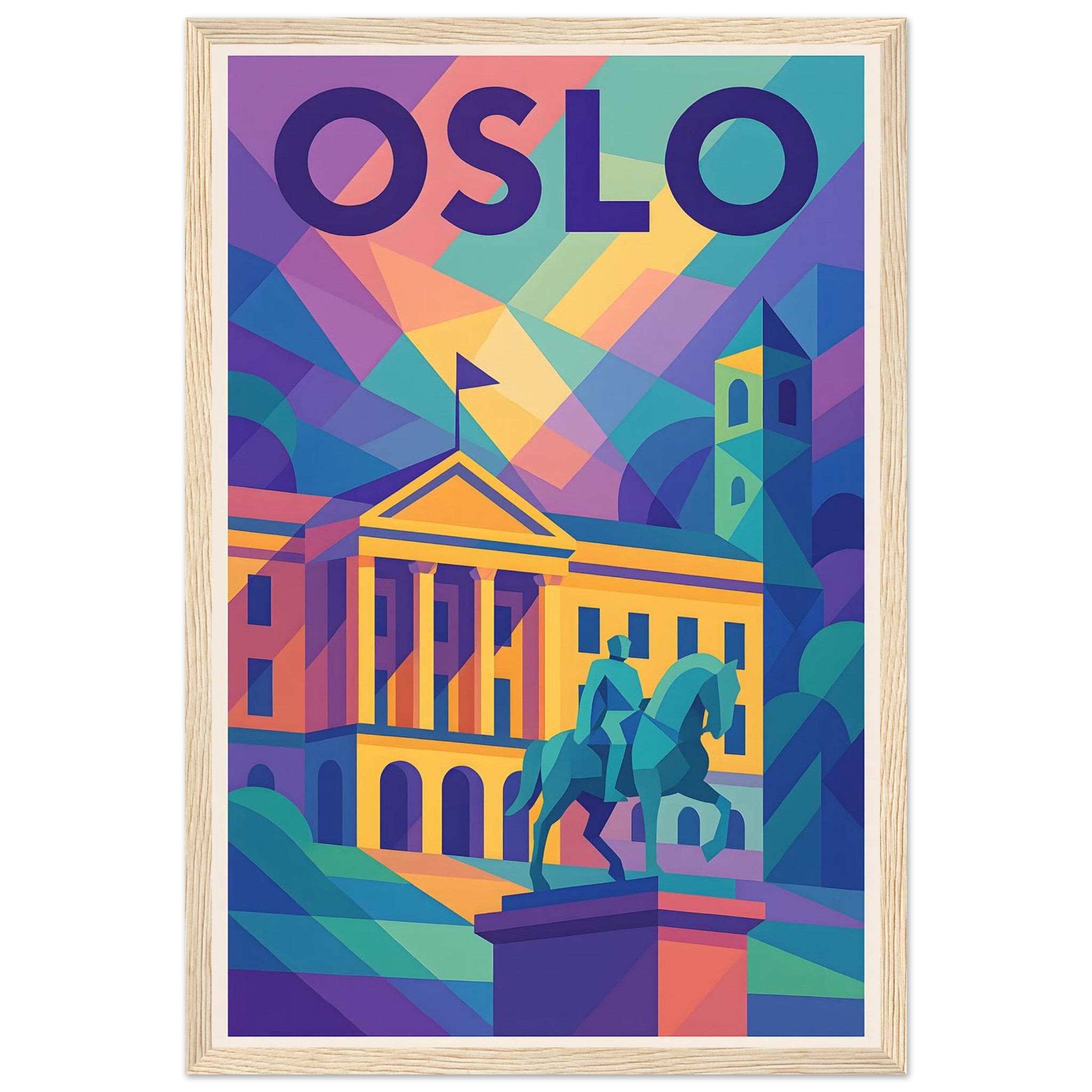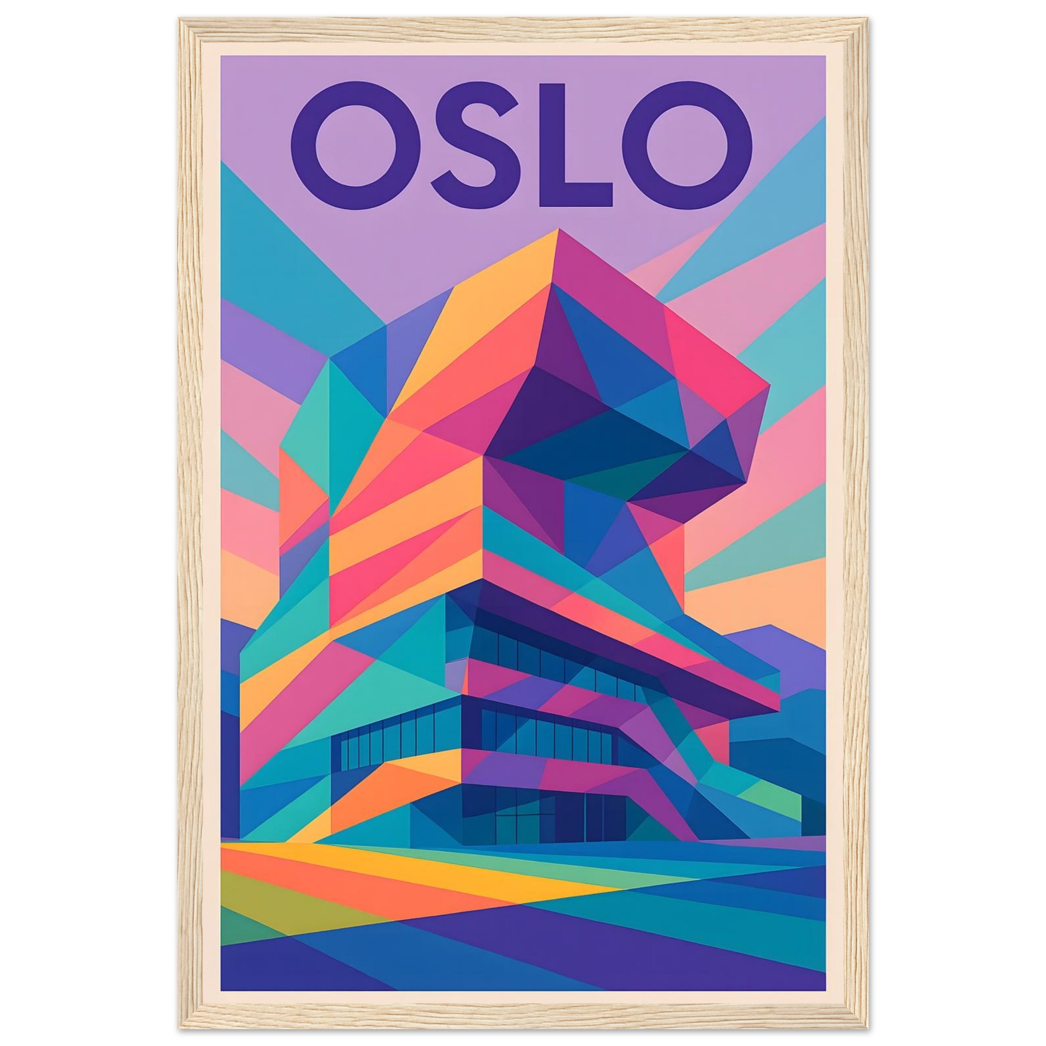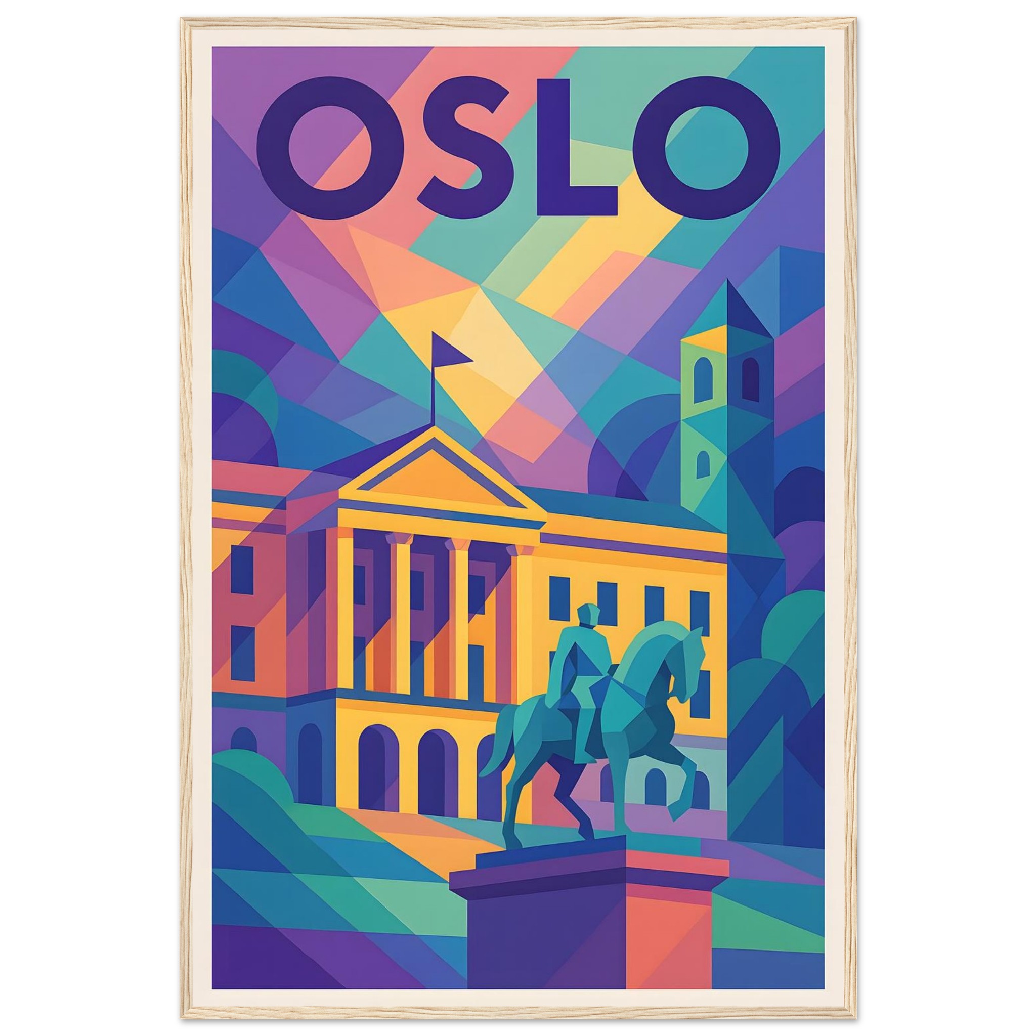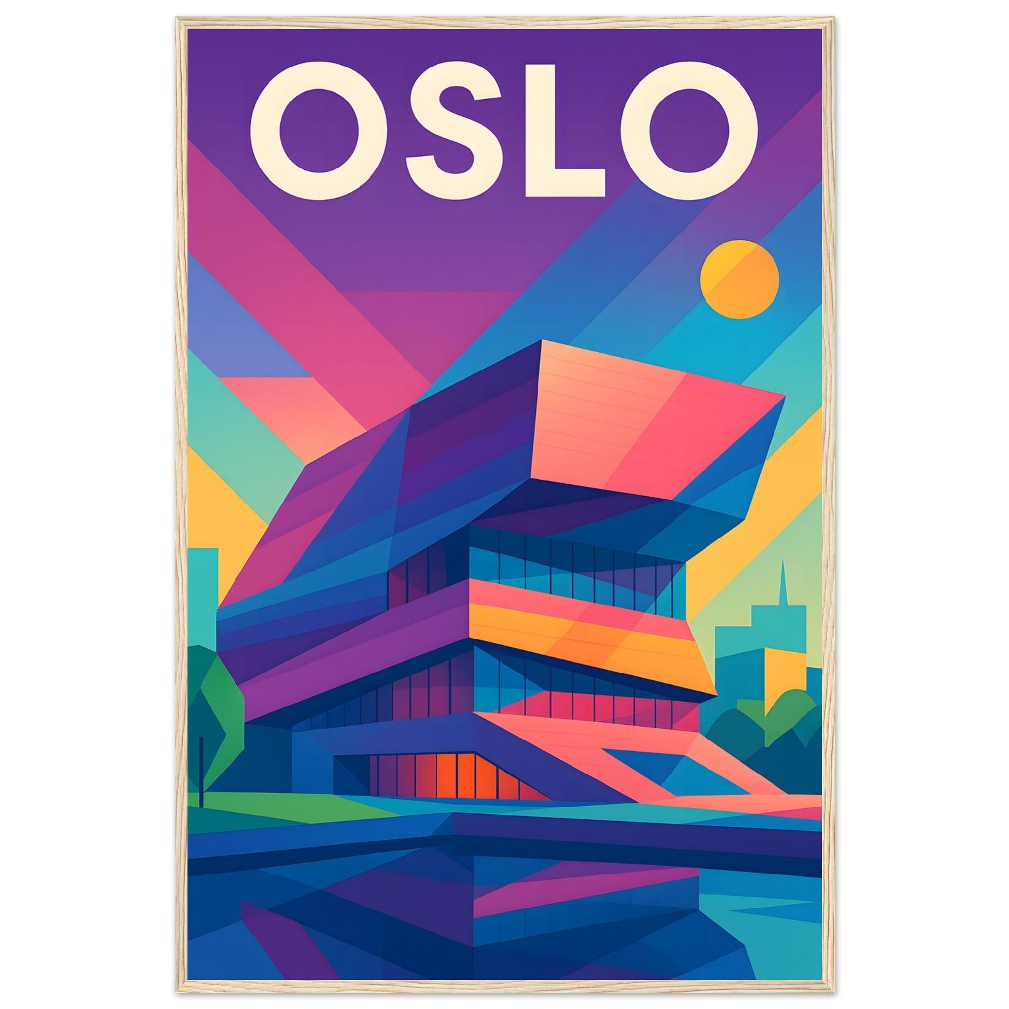 Framed Colorful Geometric Poster / Wood