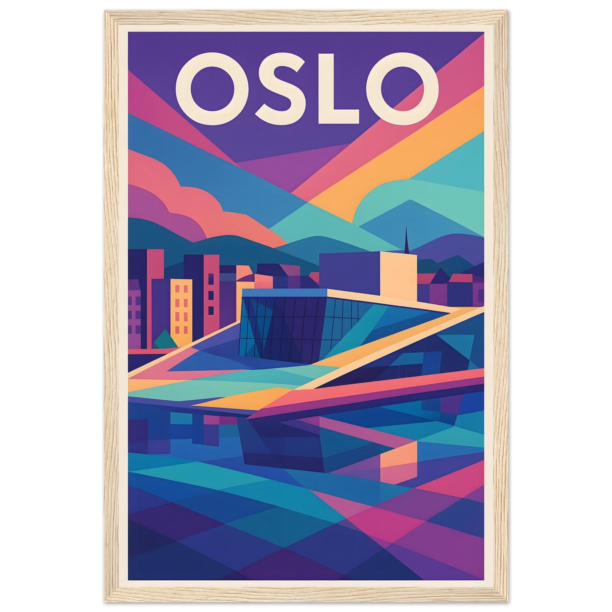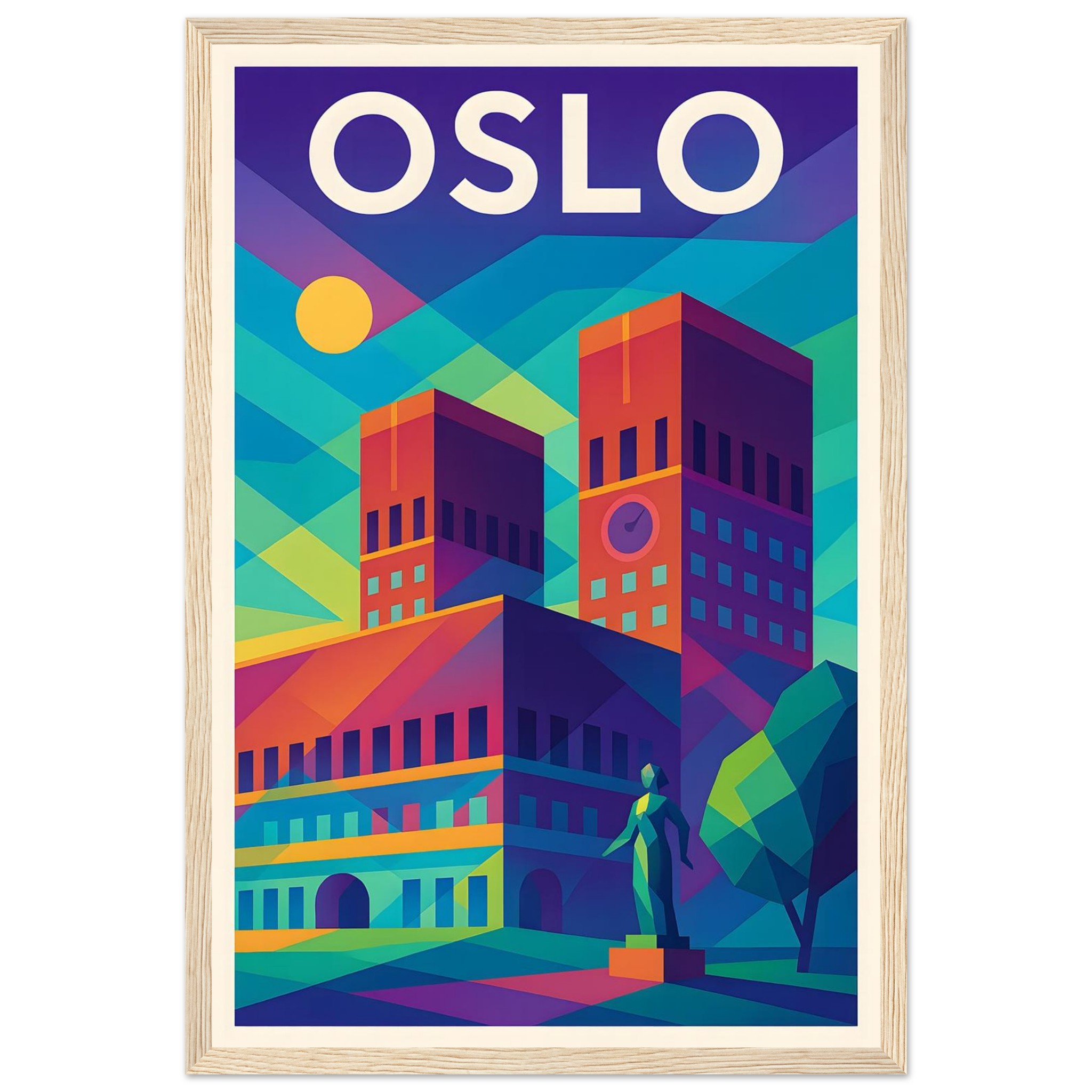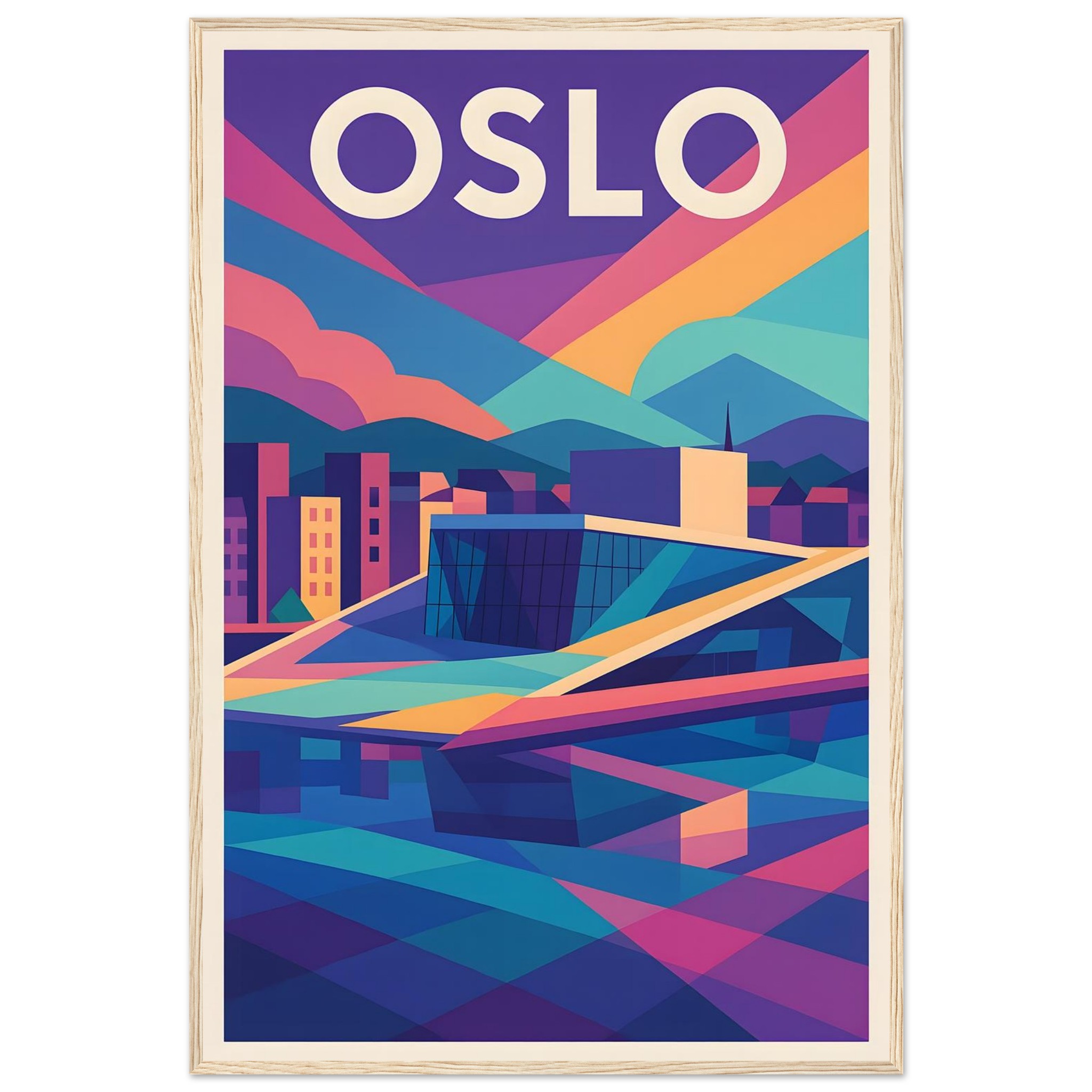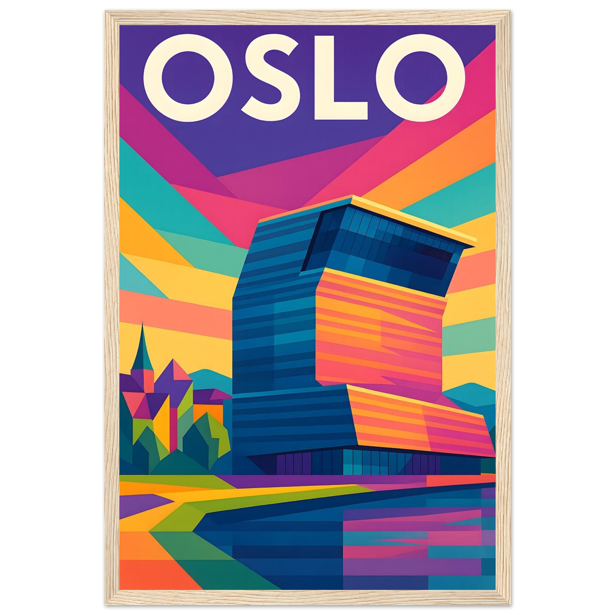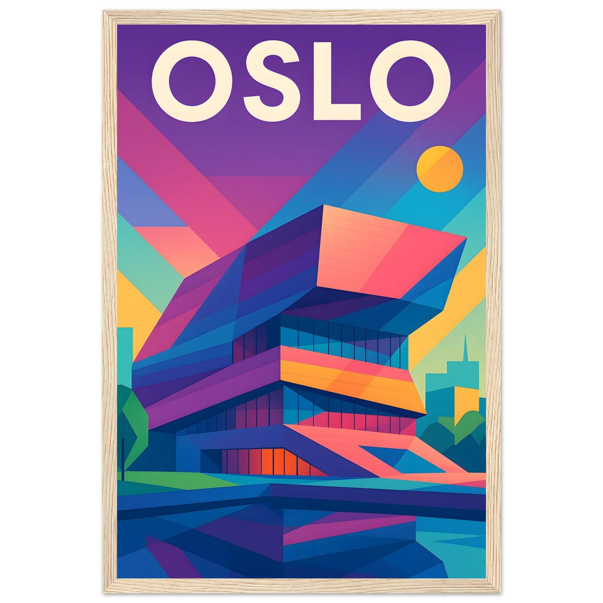 Framed Colorful Geometric Poster / Wood
