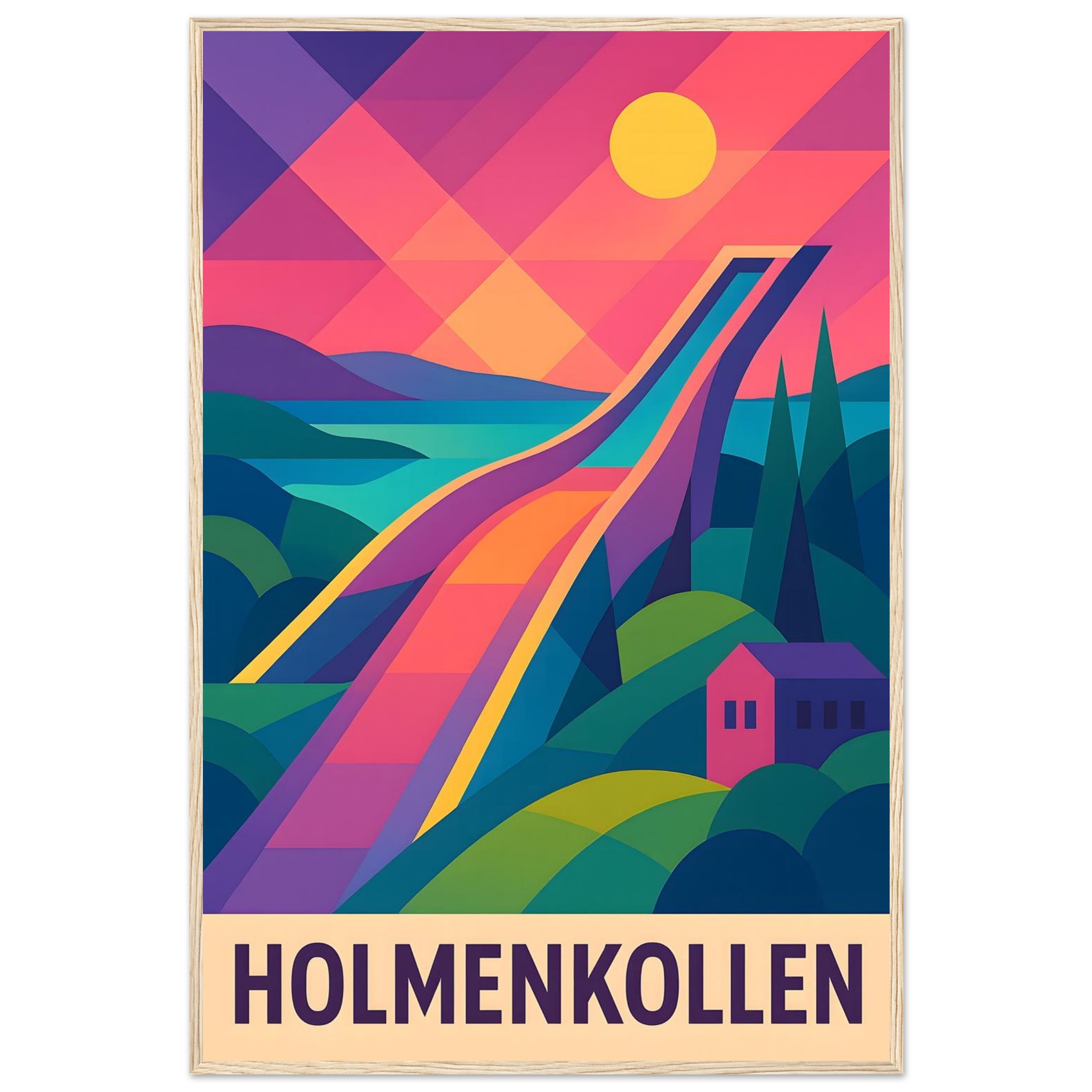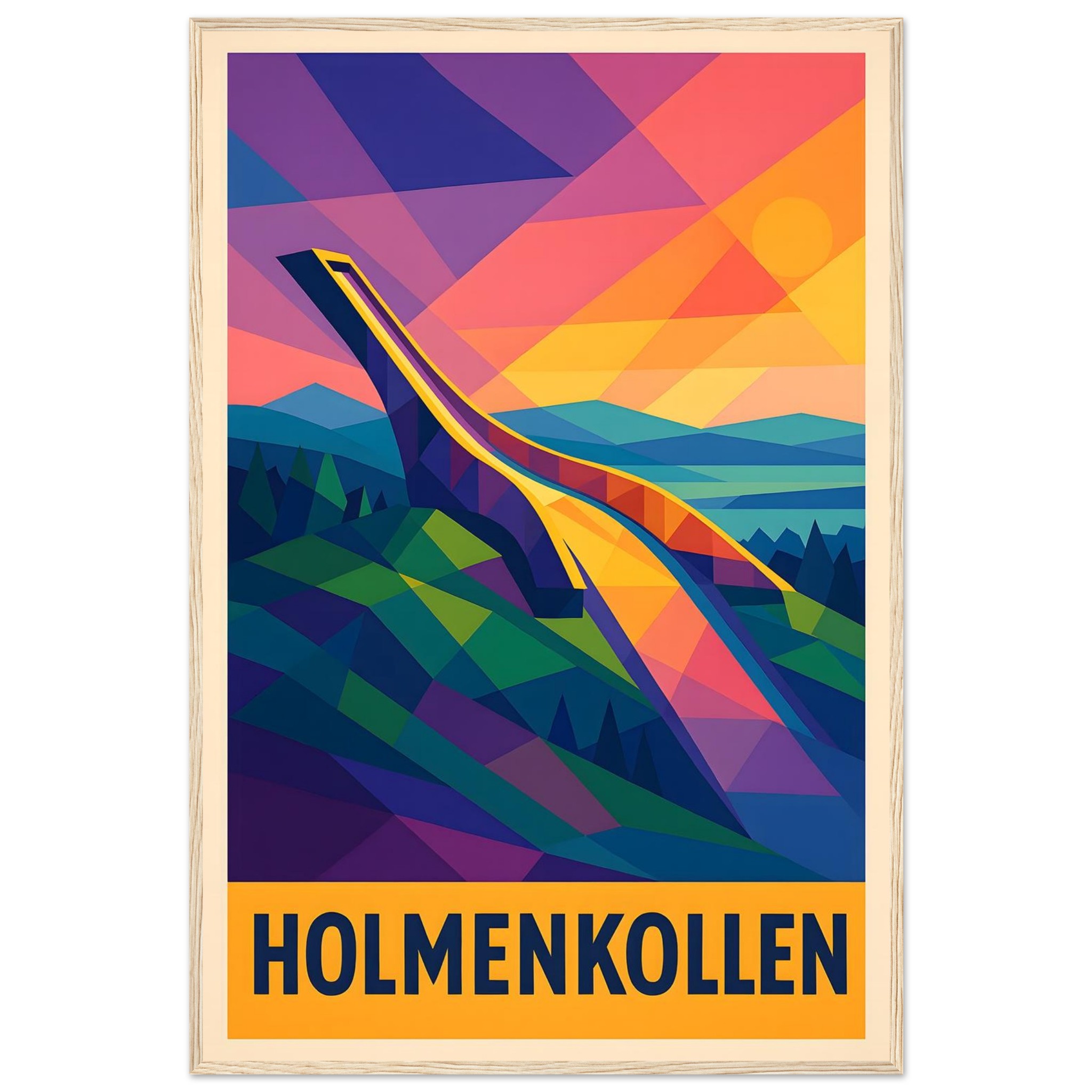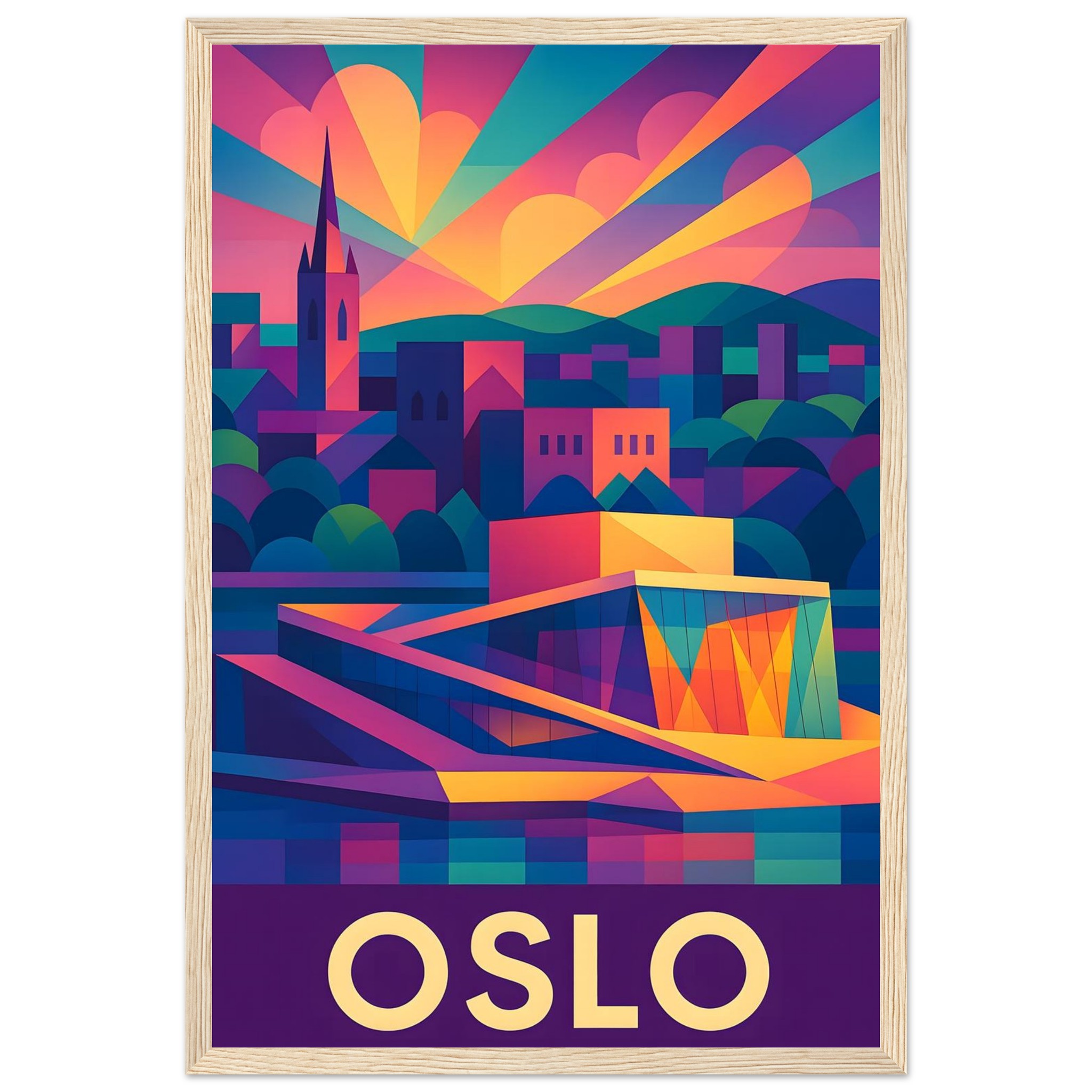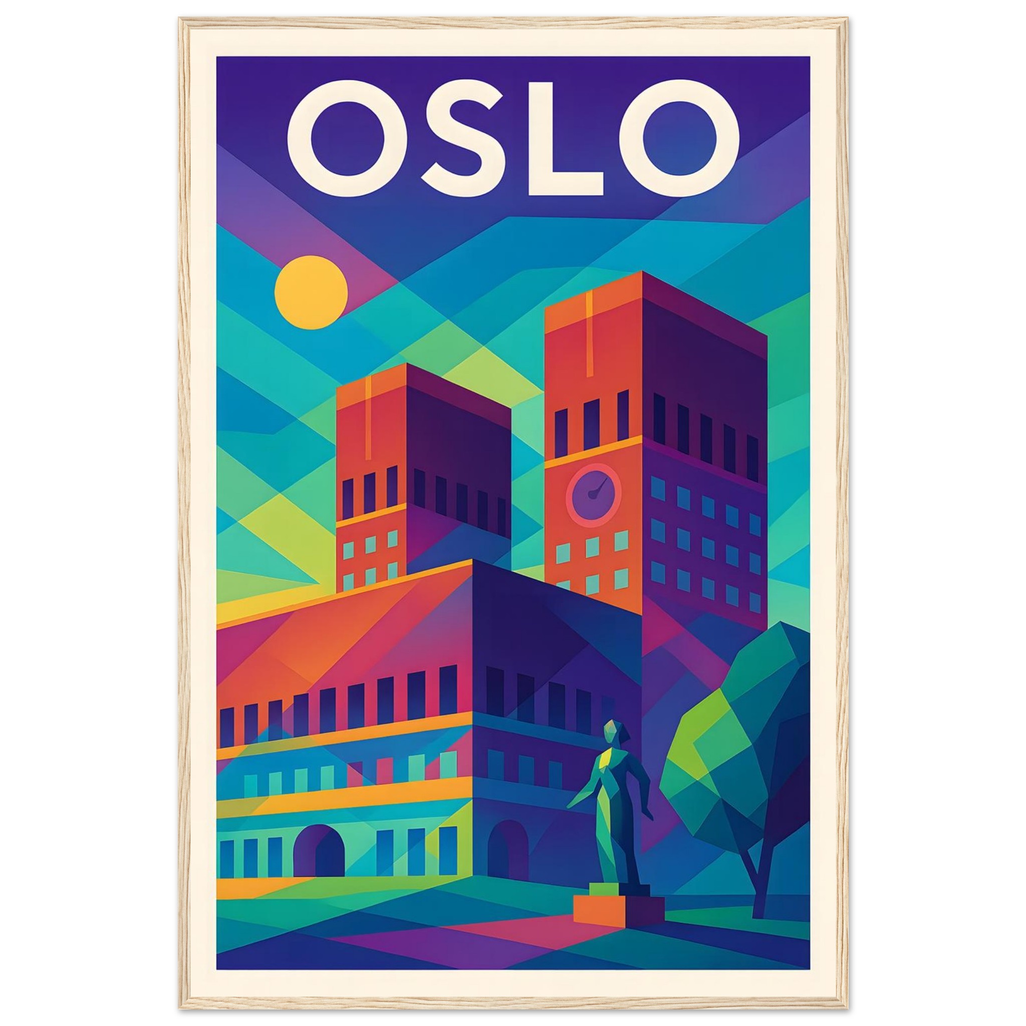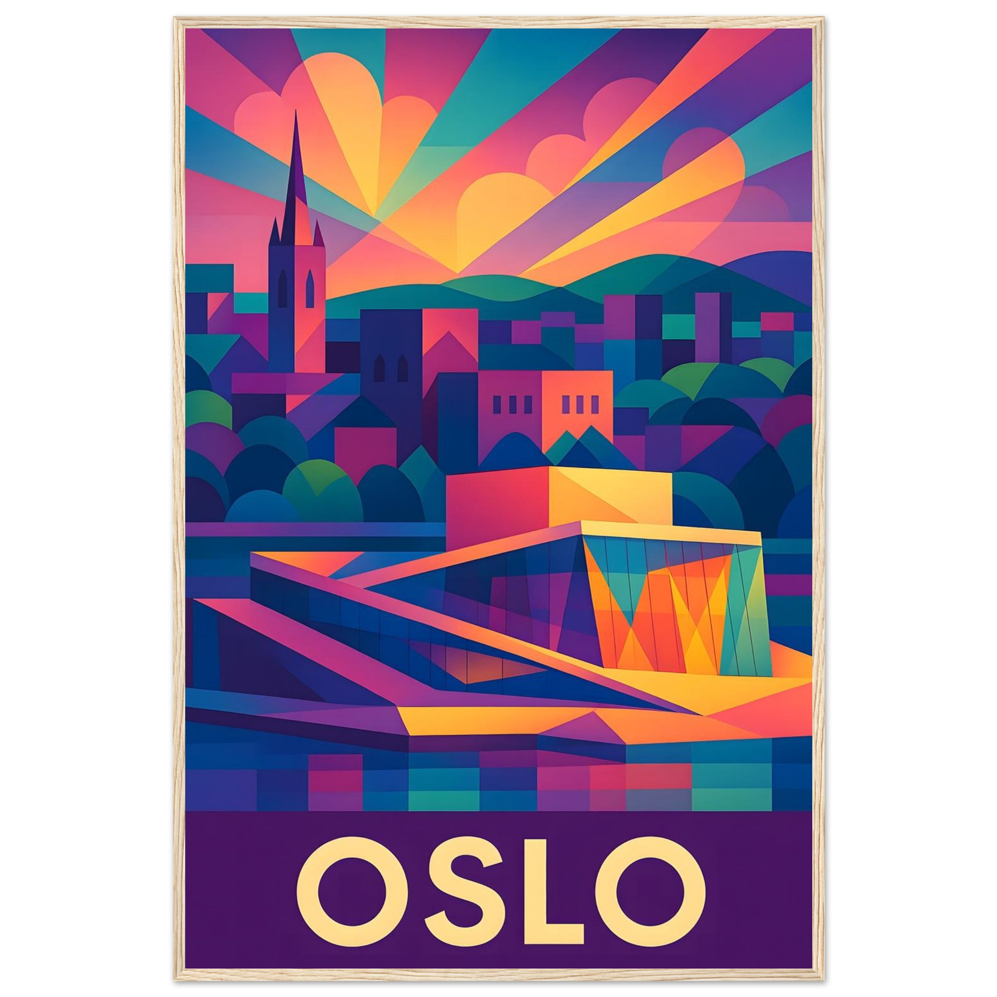 Framed Colorful Geometric Poster / Wood