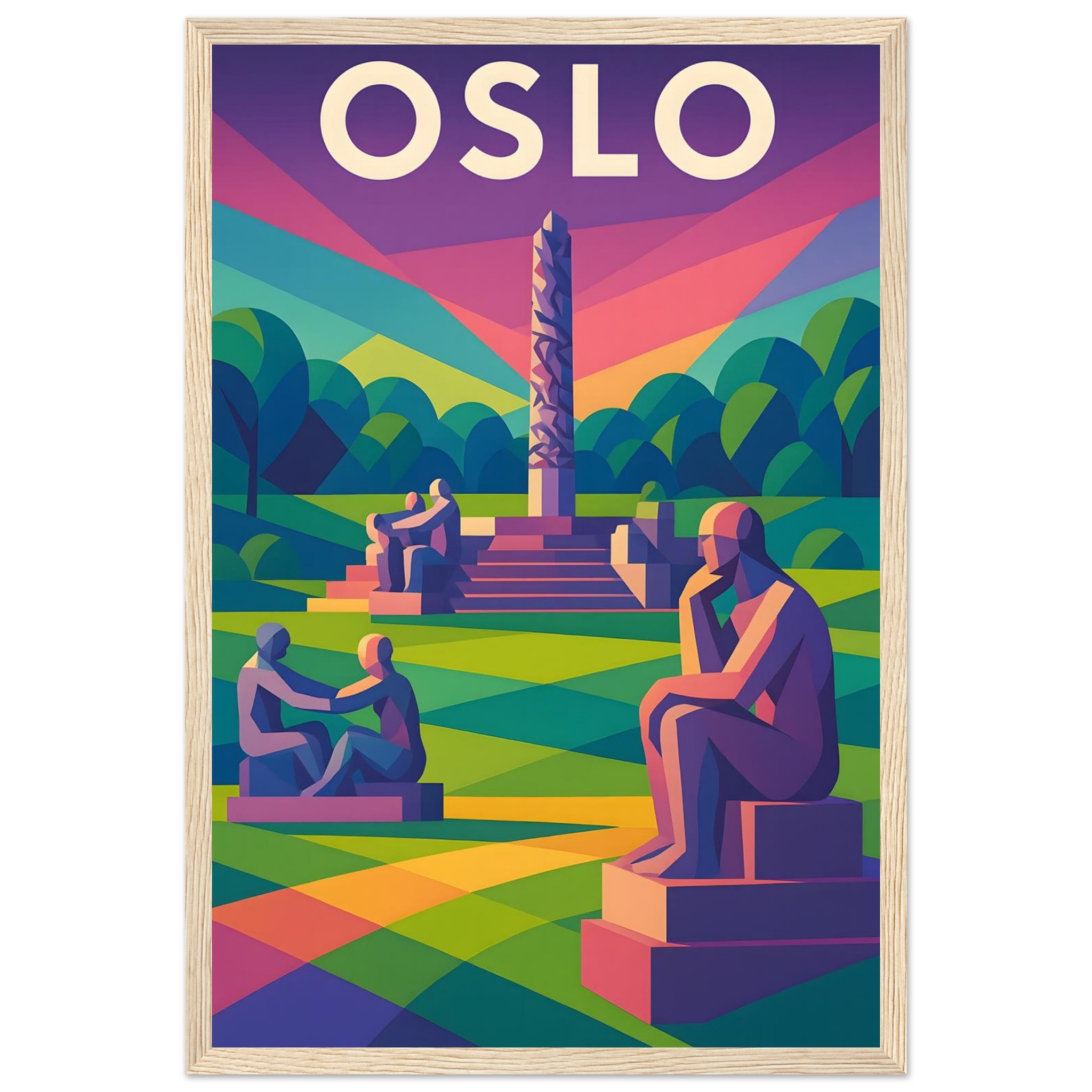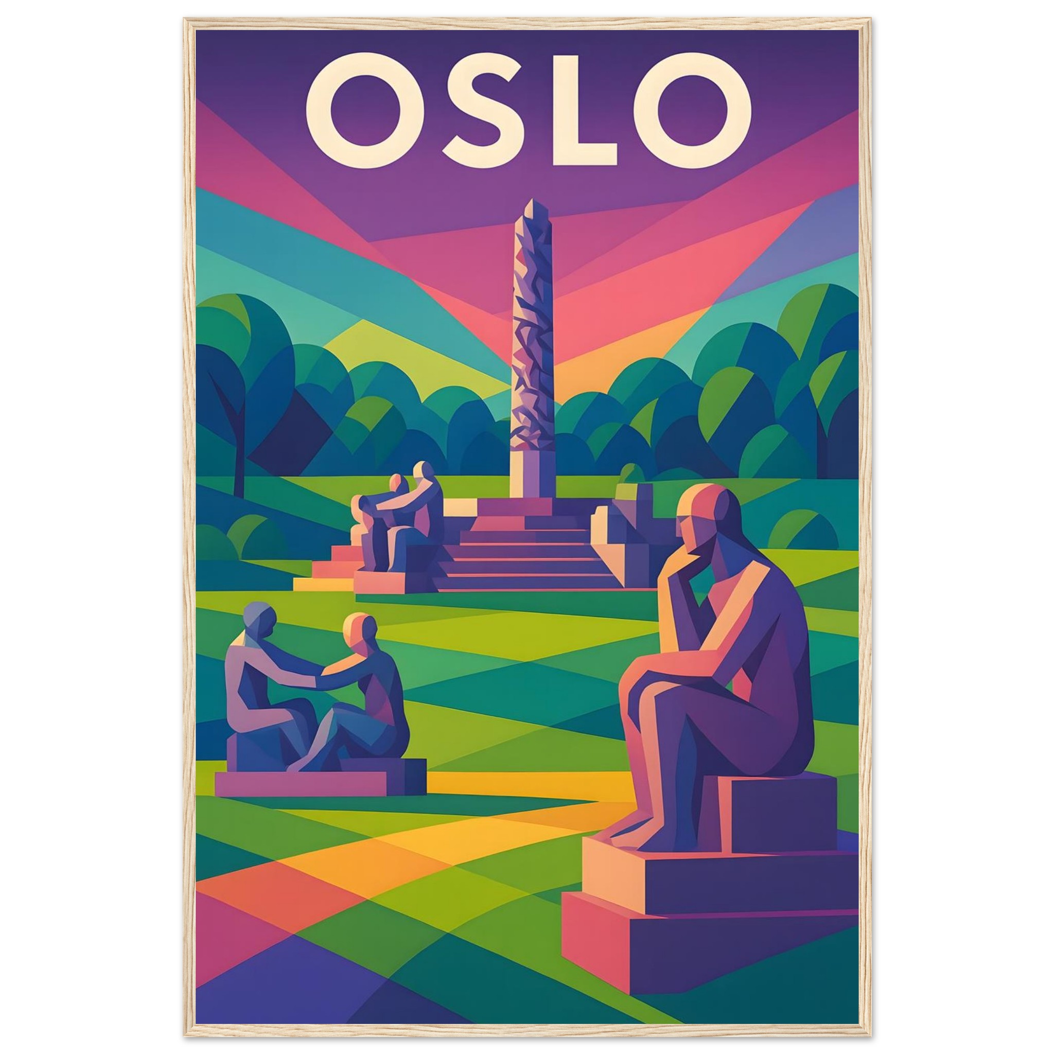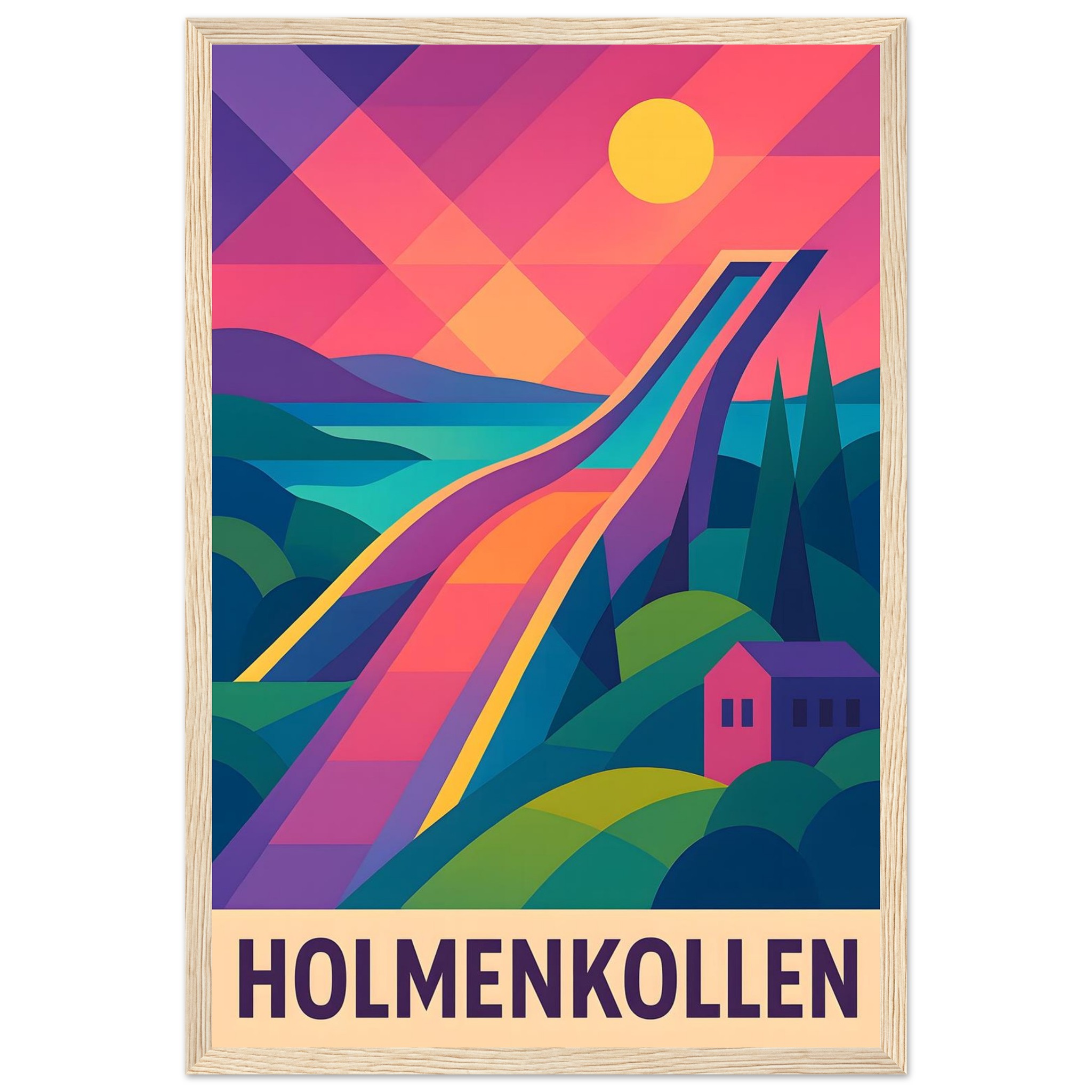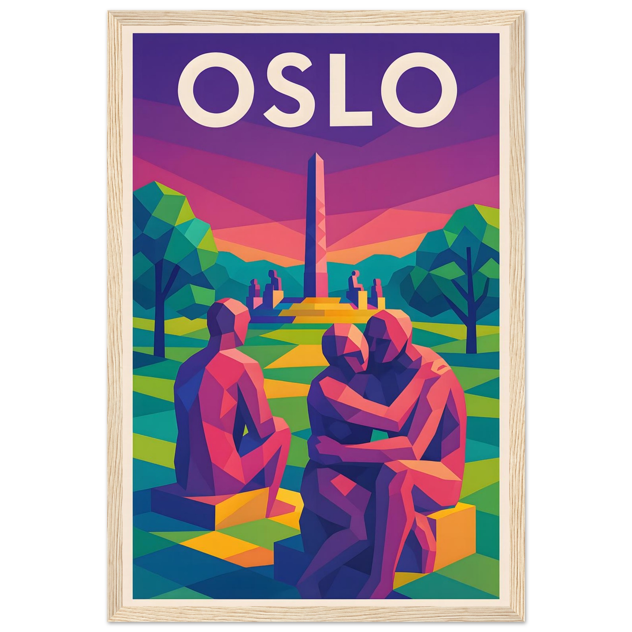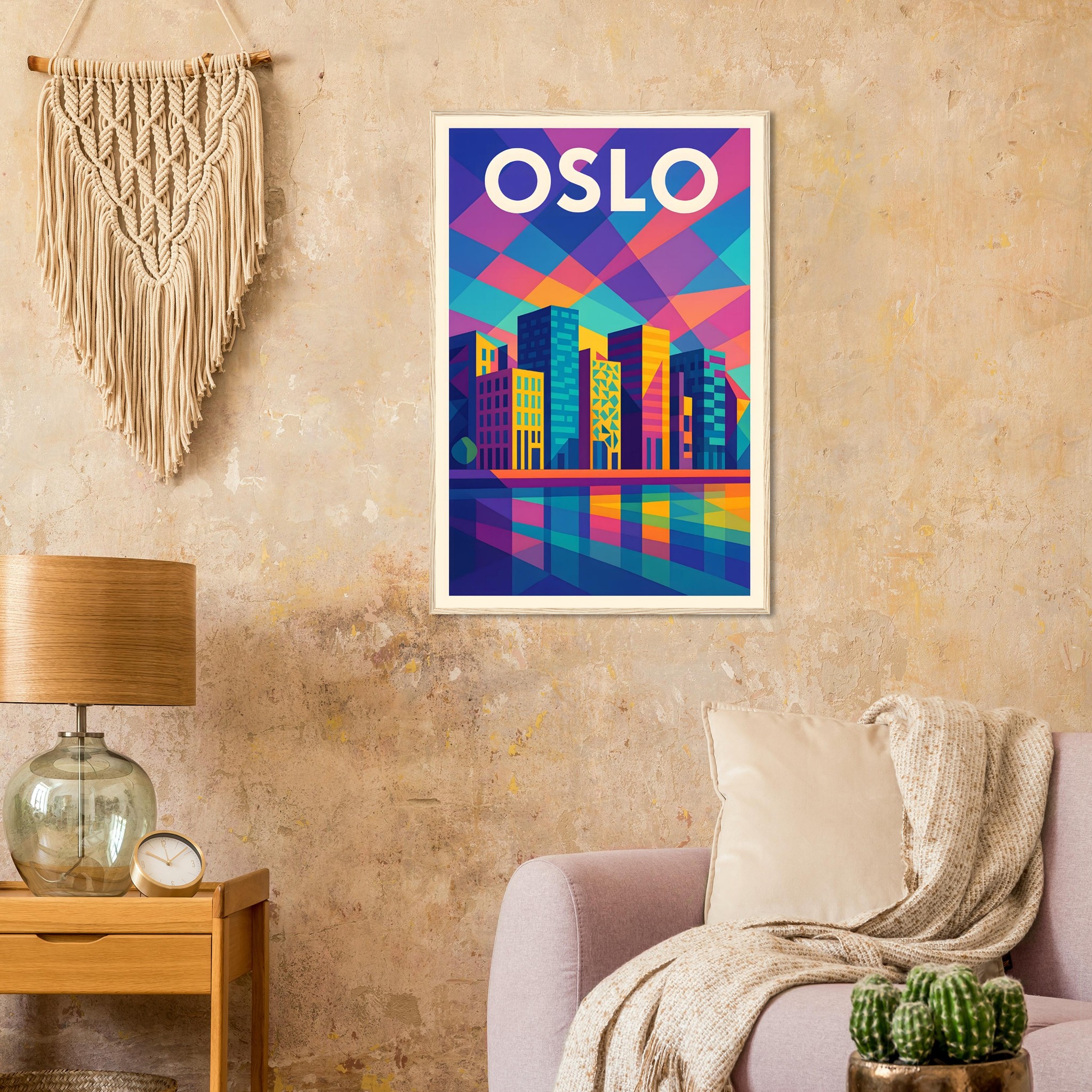 Framed Colorful Geometric Poster / Wood