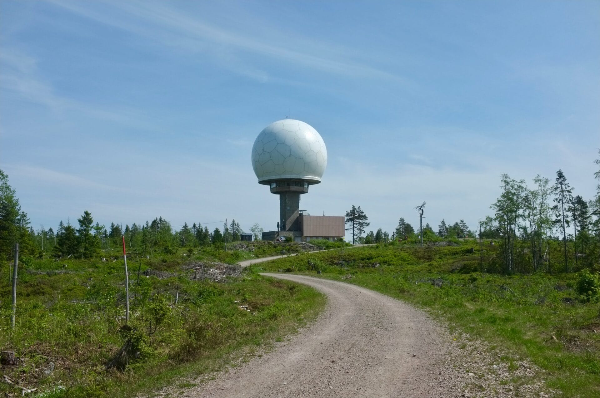 The Haukåsen Radar was established in 1964 and operates remotely under the supervision of Oslo ATCC (Area Control Center) in Røyken. The radar's rotating antenna can be glimpsed through a grate when standing directly beneath the dome. Interestingly, some geocachers have reported that the radar's radiation can interfere with GPS equipment in its vicinity.